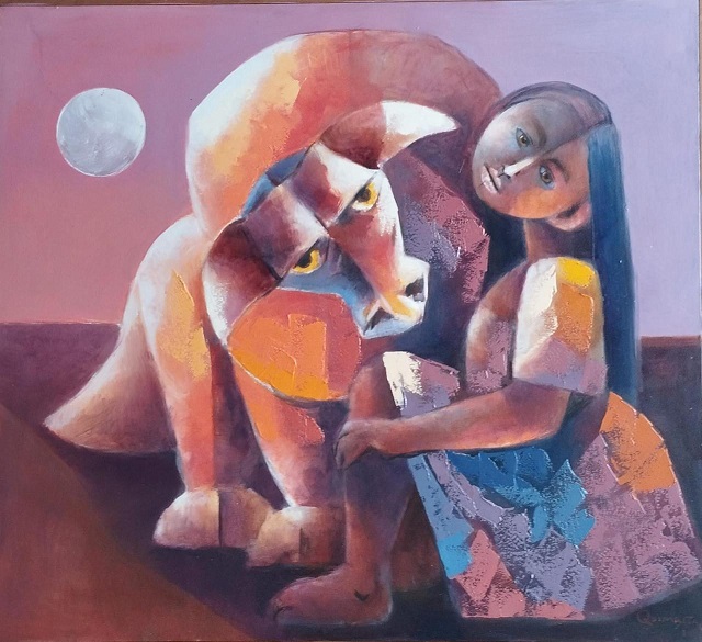 En esta nueva serie, Quimbita presenta piezas en formatos medianos y pequeños que capturan la dualidad entre fuerza y dulzura, un sello característico de su lenguaje plástico. “Pinto la luz andina y la tropical. Pinto el mundo que me ha rodeado, retratando la belleza de la familia, de los niños, de las madres… y ahora, de los toros enternecidos”, comenta el artista, cuyas composiciones destacan por su armonía entre forma, color y emoción.