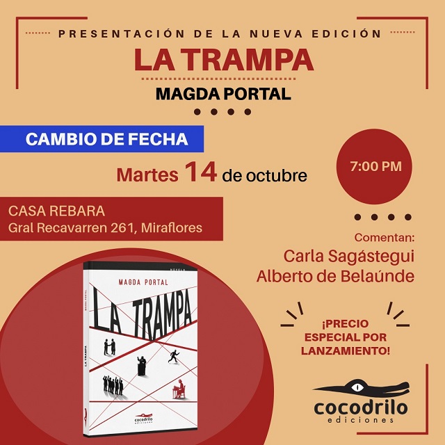 Lima, 15 de Octubre del 2025.- Considerada una de las voces más singulares y potentes de la literatura peruana del siglo XX, Magda Portal vuelve a las librerías con la cuarta edición de La trampa, única novela de la autora, publicada originalmente en 1957. La obra, que entrelaza la ficción con el testimonio político, ofrece una mirada crítica y profundamente humana sobre la militancia partidaria, la violencia política y el papel de las mujeres en los movimientos sociales de su tiempo.