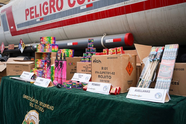 A su turno, la Sucamec, adscrita al Ministerio del Interior, dispuso el internamiento de los pirotécnicos incautados, bajo estrictas medidas de seguridad, mientras continúan las pesquisas respectivas.