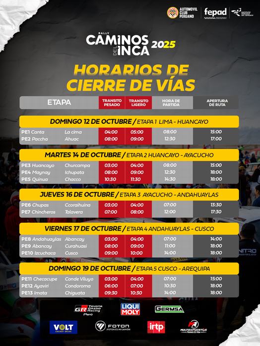 Para todos los fanáticos del deporte automotor las entradas ya están a la venta a través de Teleticket. Además, los asistentes podrán adquirir merchandising oficial del evento en los puntos de venta habilitados, una oportunidad ideal para llevarse un recuerdo de esta antesala del Rally Caminos del Inca 2025.