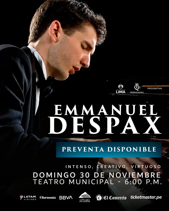 Despax, considerado por BBC Music Magazine como “un pianista de una imaginación excepcional”, debutará este 30 de noviembre en el Teatro Municipal de Lima, acompañado por la Filarmónica Teresa Quesada y bajo la dirección del maestro Pablo Sabat.
