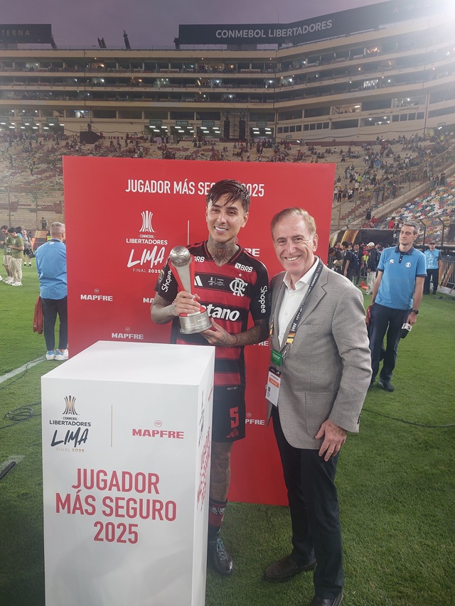LIMA, 02 de Diciembre del 2025 –La gran Final de la CONMEBOL Libertadores tuvo varios jugadores destacados. MAPFRE y la Confederación Sudamericana de Fútbol entregaron por segundo año consecutivo el Premio al ‘Jugador Más Seguro’, un galardón que reconoce al futbolista con un desempeño defensivo sobresaliente, especialmente en relación con la seguridad y la confianza manifestada en momentos críticos del partido y toda la competición.