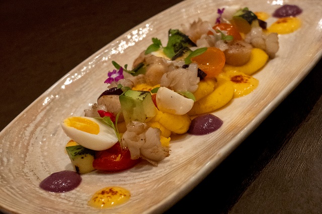 “La cena maridaje tiene un concepto claro: productos peruanos en un viaje de sabores, con paraderos definidos que se integran sensorialmente con los vinos y sus cepas”, dijo Julio Pons-Muzzo, chef corporativo de Hoteles Costa del Sol.