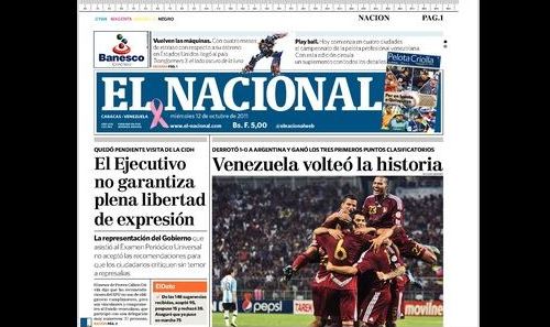 Medios venezolanos celebran la victoria de su selección por 1 – 0.