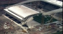 Al desplomarse una estructura de metal sobre una tribuna del futuro Estadio del Corinthians