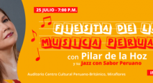 Lima,24 de julio de 2017.- La primera dama del jazz peruano, Pilar de la Hoz, se presentará el próximo 25 de julio a las 7:30 p.m. en “Fiesta de la Música Peruana” del Centro Cultural Británico. En este show compartirá algunos de los temas que formarán parte de su próximo disco “Jazz con Sabor Peruano II”, una […]