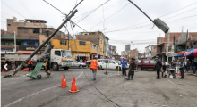 Personal de Edelnor trabaja en la reparación del poste de alumbrado público que esta madrugada cayó en un sector de Caquetá, San Martín de Porres, tras el choque de un camión de servicio de limpieza. Vecinos de la calle Mártir Olaya dijeron que en un principio el poste, de unos 40 años de antiguedad, se […]