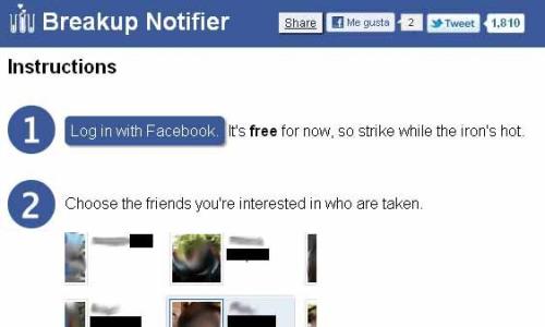 La aplicación te avisa que amigos terminaron una relación.