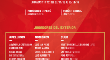 La Federación Peruana de Fútbol hace pública la convocatoria de los jugadores que actúan en clubes del exterior, para la decimoprimera y decimosegunda fecha de las Eliminatorias rumbo a la Copa del Mundo Rusia 2018.