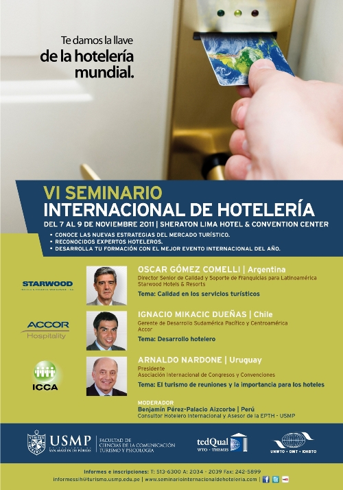 Del 7 al 9 de noviembre en el Sheraton Lima Hotel & Convention Center Últimas tendencias en el mercado hotelero serán abordadas en el Seminario Internacional de Hotelería organizado por la USMP La Escuela Profesional de Turismo y Hotelería de la Universidad de San Martín de Porres (USMP) realizará el VI Seminario Internacional de Hotelería con la finalidad […]